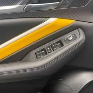Сиденья с отделкой искусственной кожей с вставкой желтого цвета;