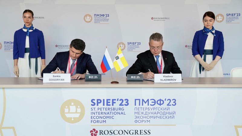 По данным управления, соглашение заключено между правительством Ставрополья и компанией-застройщиком. Подписи под документом поставил глава края Владимир Владимиров, представляющий на форуме делегацию региона, и акционер девелоперской группы Саркис Гогорян.