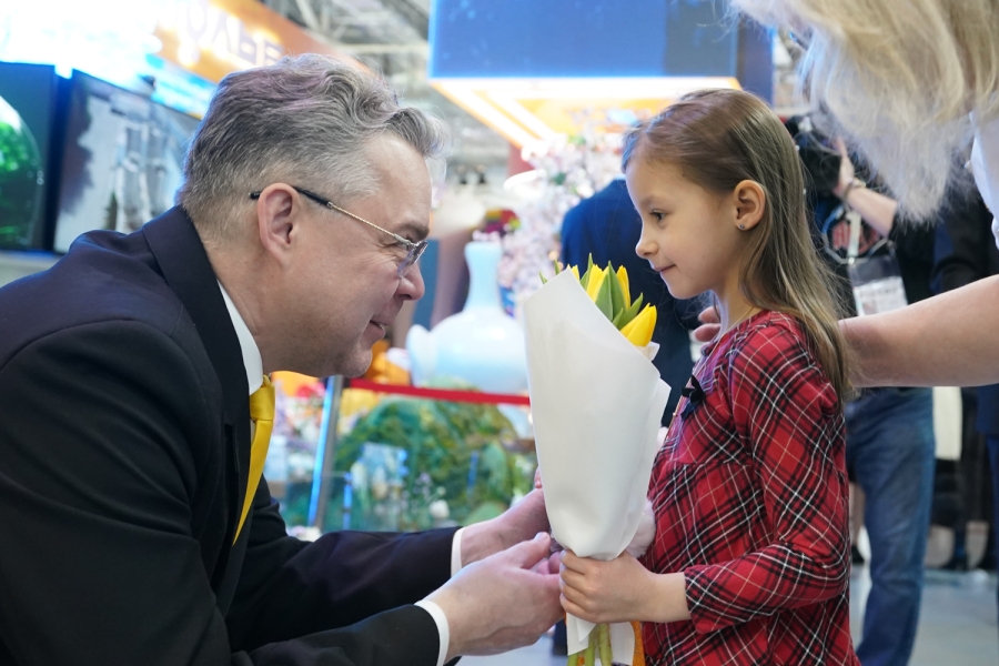 ГУБЕРНАТОР ВЛАДИМИРОВ ПОЗДРАВИЛ ПОСЕТИТЕЛЬНИЦ СТЕНДА СТАВРОПОЛЬЯ НА ВЫСТАВКЕ «РОССИЯ» С 8 МАРТА