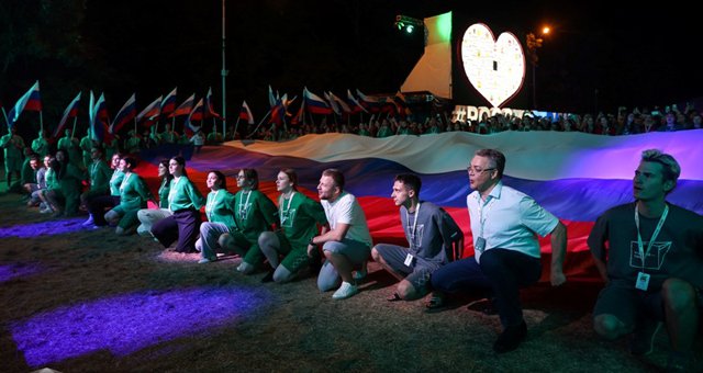Российский флаг площадью 144 квадратных метров развернули в Пятигорске участники Всероссийского форума «Машук» вместе с Владимиром Владимировым и Денисом Майдановым