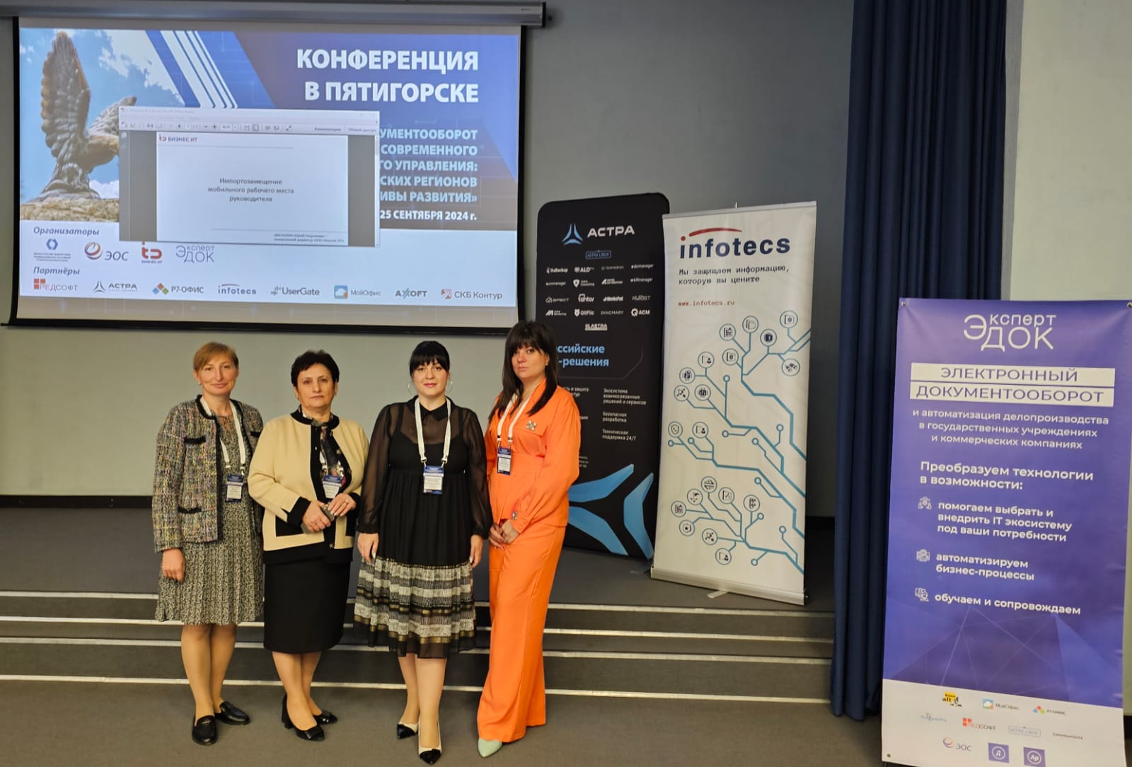 24 сентября 2024 года в городе Пятигорск состоялась межрегиональная конференция на тему "Электронный документооборот как основа современного государственного управления: опыт российских регионов и перспективы развития". В конференции приняли участие председатель комитета Ставропольского края по делам архивов Валерия Евгеньевна Болотова и заместитель председателя Екатерина Владимировна Захарчук.