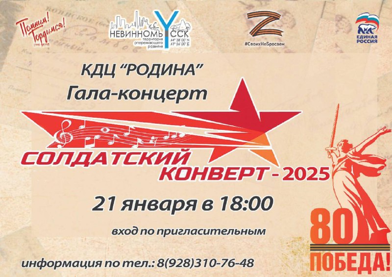 В Невинномысске пройдет гала-концерт XXXII городского конкурса патриотической песни «Солдатский конверт — 2025», посвященный Году защитника Отечества.