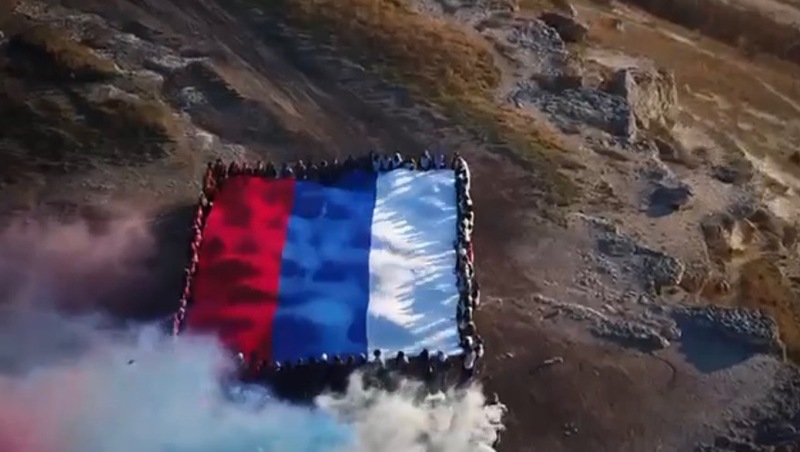 На смотровой площадке Белой скалы 150 студентов и школьников развернули большой флаг России.