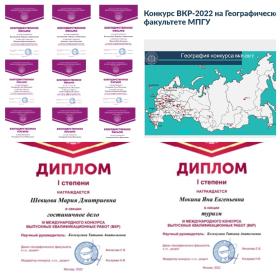 В 2022 году Географический факультет Московского педагогического государственного университета (г. Москва) в третий раз объявил о начале Международного конкурса ВКР, проходящего в рамках II Международного Страбоновского форума. Цель конкурса — поддержка творческой инициативы и профессионального мастерства выпускников вузов и колледжей, а также их научных руководителей. Оценка конкурсных работ проходила в группах для ВКР студентов бакалавриата, выпускников магистратуры и учащихся колледжей. В этом году было подано рекордное количество работ — 275. В конкурсе приняли участие 49 вузов и 8 колледжей из России и стран ближнего зарубежья.