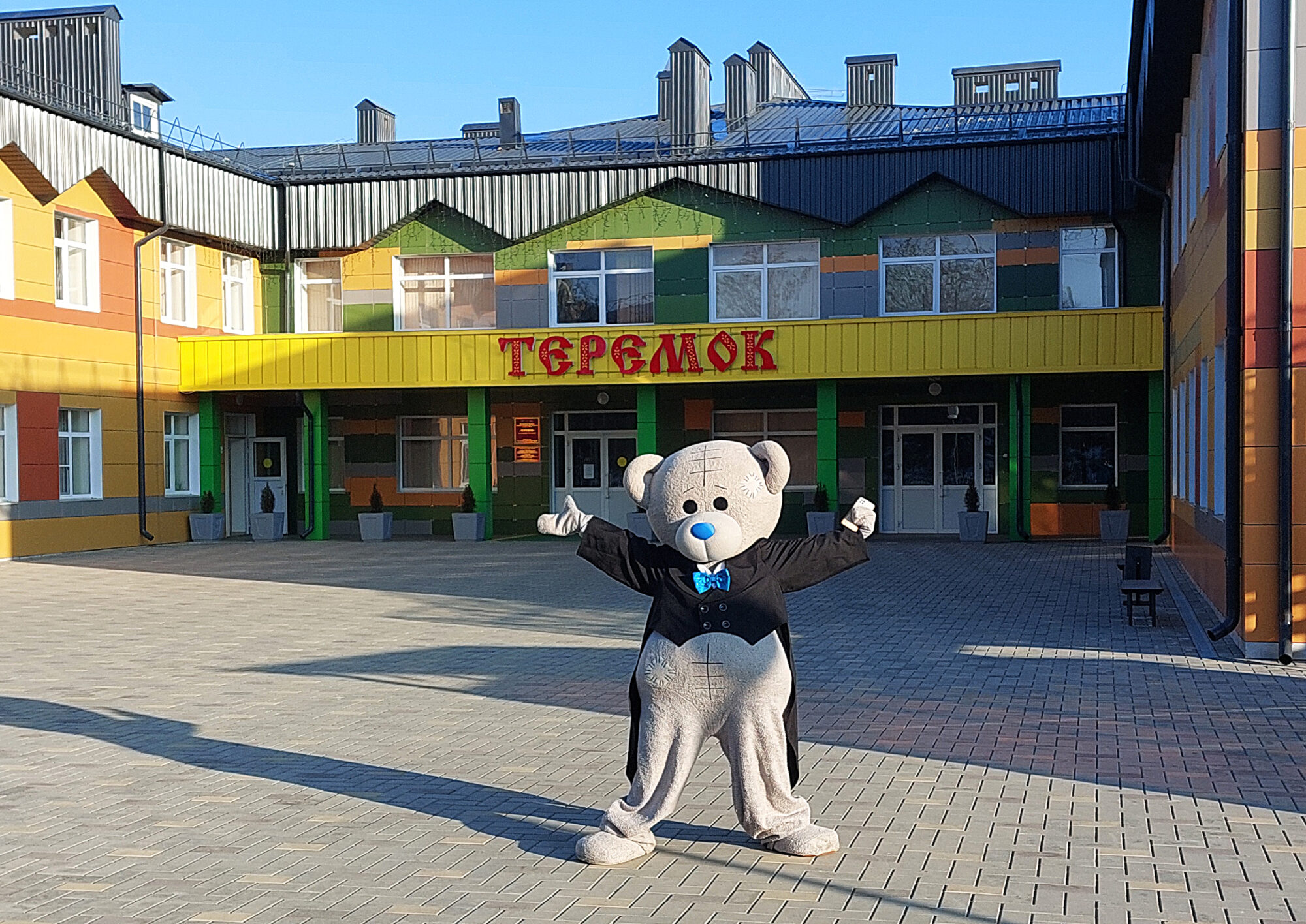 Прежде чем войти в новенькое разноцветное здание, члены жюри, конкурсанты и болеющие за них коллеги полюбовались просторными, прекрасно оборудованными детскими игровыми площадками и улыбнулись весёлой Мышке, радушно встречавшей гостей у входа в «Теремок».