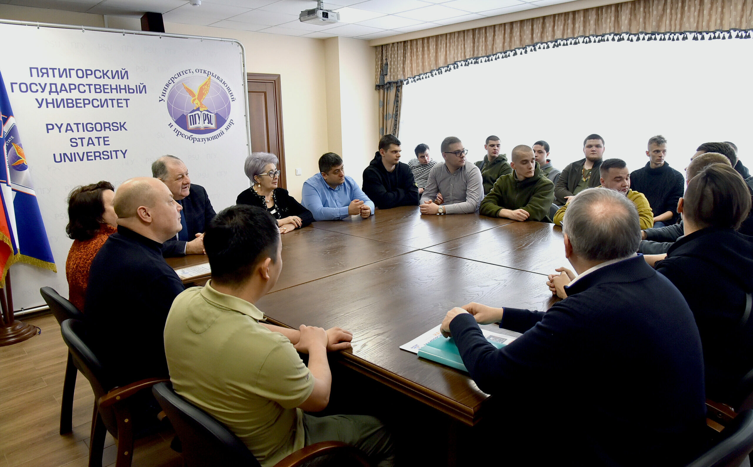 В соответствии с приказом Министерства науки и высшего образования России, где Пятигорский государственный университет указан вторым партнером Донбасской юридической академии по Российской Федерации, а также на основании договора о сотрудничестве между Пятигорским государственным университетом и Донбасской юридической академией 27 февраля 2023 года в Пятигорский государственный университет на две недели прибыли шестнадцать представителей Донбасской юридической академии (ДЮА).