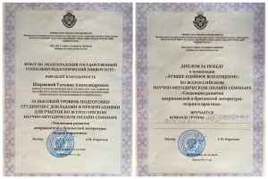 Студенты ПГУ - победители Всероссийского научно-методического онлайн семинара «Тенденции развития американской и британской литературы: теория и практика»