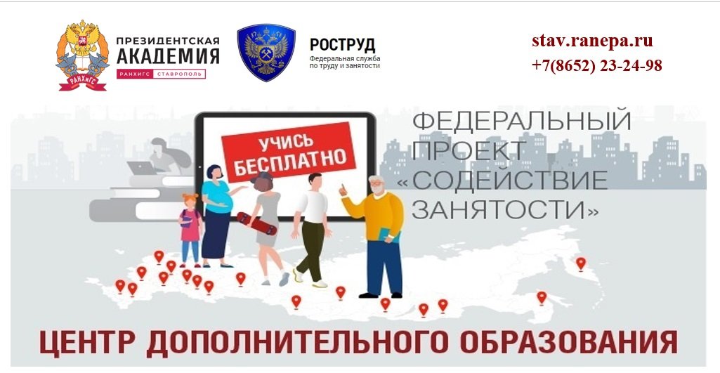 Ставропольским филиал РАНХиГС, в рамках федерального проекта «Содействие занятости» национального проекта «Демография», предлагает гражданам Ставропольского края, Республик Дагестан,