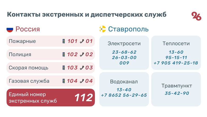 Информагентство «Победа26» делится с жителями города Ставрополя полезными номерами телефонов, которые могут пригодиться в новогодние праздники. Например, если у вас отключили воду/свет/газ.