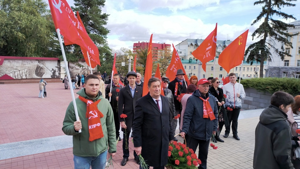 «Красную колонну» возглавили член ЦК КПРФ, первый секретарь Ставропольского крайкома КПРФ, глава фракции Компартии в региональном заксобрании, первый заместитель Председателя Думы края В.И. Гончаров, а также депутат-коммунист гордумы столицы края Т.М. Чершембеев.