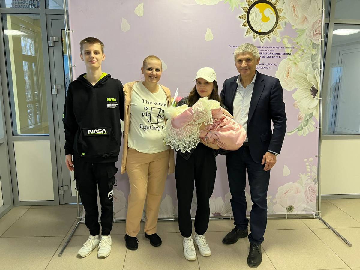 Новорождённую с мамой также встречали двое старших детей, представители «Единой России» и один из организаторов фотопроекта Нина Полякова .
