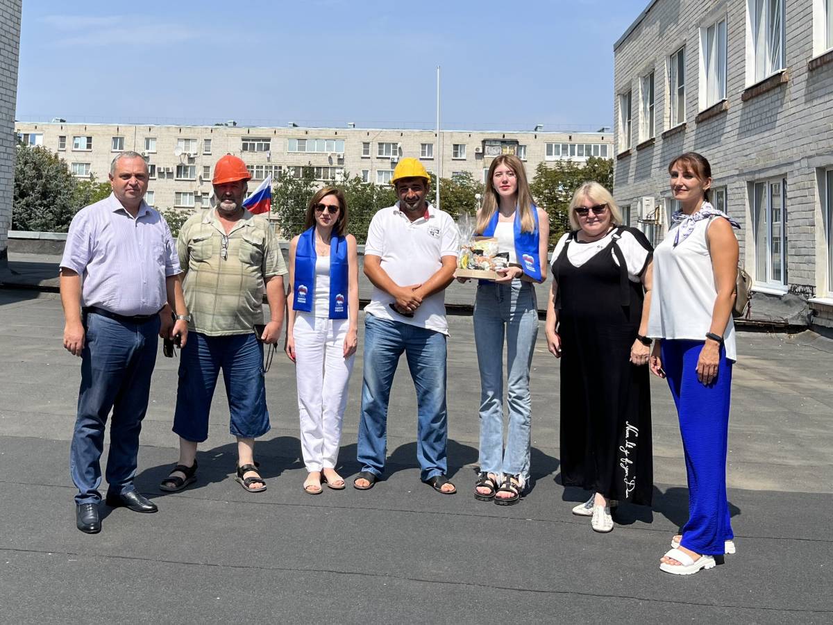 Сотрудники Георгиевского местного отделения партии «Единая Россия» совместно с депутатами Думы округа Ириной Щербиной, Дмитрием Резвановым и Загиром Муртазаевым поздравили строителей Сергея Бегларьян и Магомеда Алигаджиева с праздником, поблагодарили за их труд и вручили вкусный подарок.