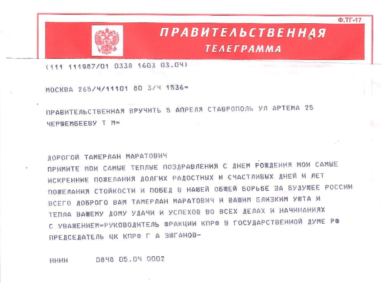 Редакции Kprf.ru и kprf26.ru присоединя.тся к поздравлениям в адрес Т.М. Чершембеева.