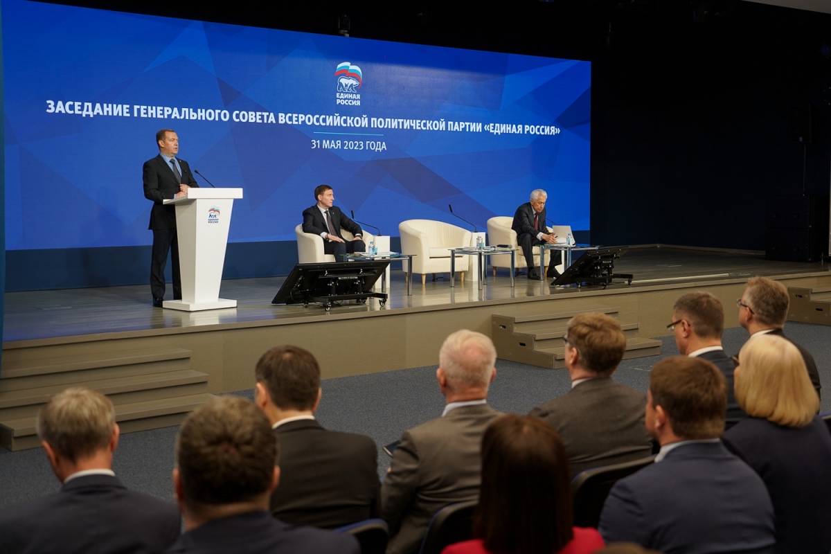 В нём приняли участие председатель партии Дмитрий Медведев , секретарь Генерального совета партии Андрей Турчак . Среди делегатов совета – секретарь регионального отделения партии, губернатор Ставропольского края Владимир Владимиров .