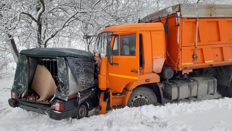 По данным ведомства, авария произошла на 19 км автодороги Новоалександровск — Кропоткин. Водитель ИЖ на заснеженной трассе не справился с управлением и выехал на встречную полосу, где врезался в грузовой КамАЗ.
