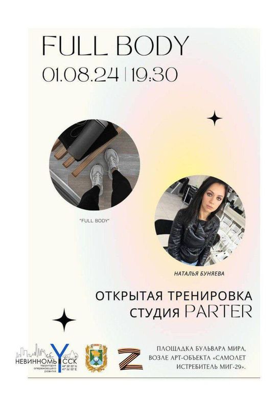 1 августа на бульваре Мира состоится тренировка FULL BODY. Жителей и гостей Невинномысска пригласили на тренировку FULL BODY – это комплексное занятие, которое включает в себя упражнения на все группы мышц,