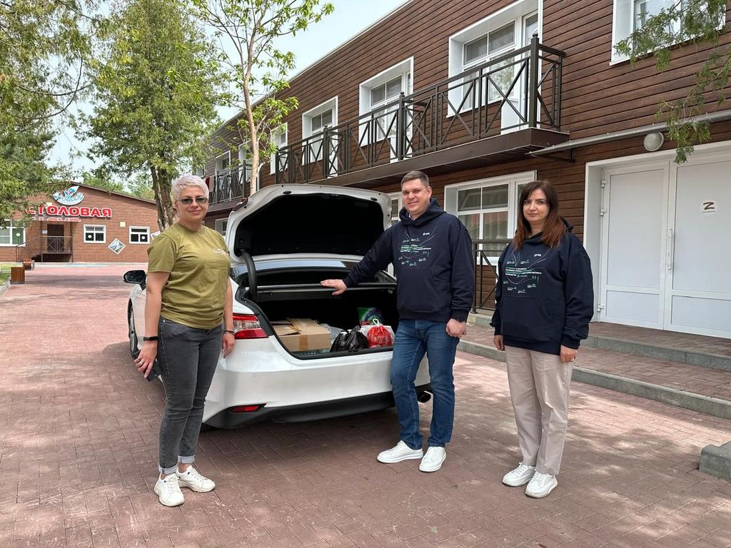 Исполнительный директор Александр Безносов и директор по персоналу Виктория Казарова привезли в детский оздоровительно-образовательный (профильный) центр «Гренада» стиральный порошок, кухонные ножи, разделочные доски, мыло для рук, моющее средство для посуды для комфорта наших гостей из Белгородской области. Также детям подарили сувенирные календари предприятия.