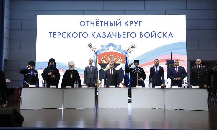 В ходе мероприятия Алексей Кириченко зачитал приветствие помощника Президента Российской Федерации, председателя Совета при Президенте Российской Федерации по делам казачества Дмитрия Миронова участникам отчетного круга Терского войскового казачьего общества.