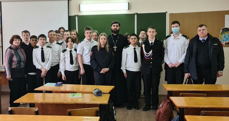9 марта 2023 года настоятель храма Святой Троицы села Донского священник Петр Юркин совместно с представителями Отдела МВД России «Труновский» провел профилактическую беседу с учащимися гимназии №7 села Донского.