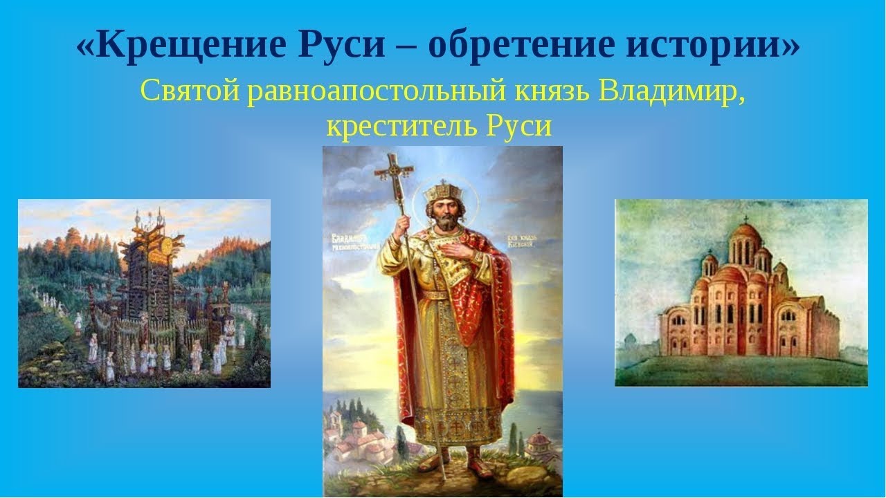 Крещение стало ключевым поворотом всей российской истории, государственности и нашей культуры. В церковную традицию, в память народа Крещение Руси навсегда вошло с именем и делами святого равноапостольного князя Владимира. Князю Владимиру суждено было стать государем великим.