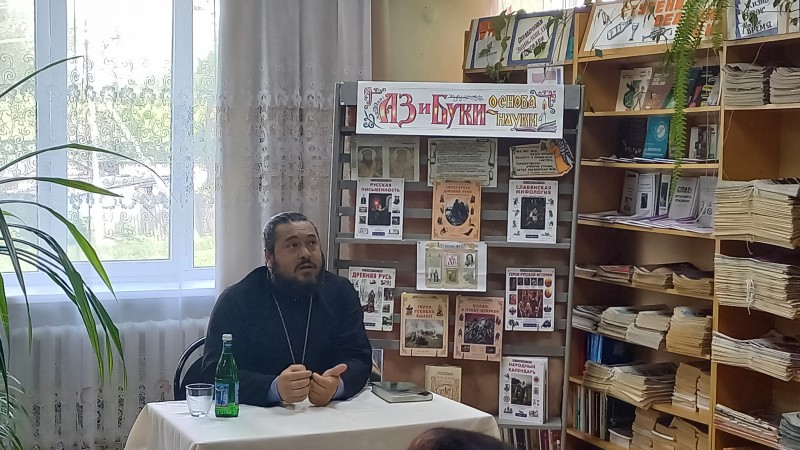 В библиотеке №16 ст. Староизобильной для читателей состоялась встреча с настоятелем храма святого Апостола Иоанна Богослова отцом Михаилом