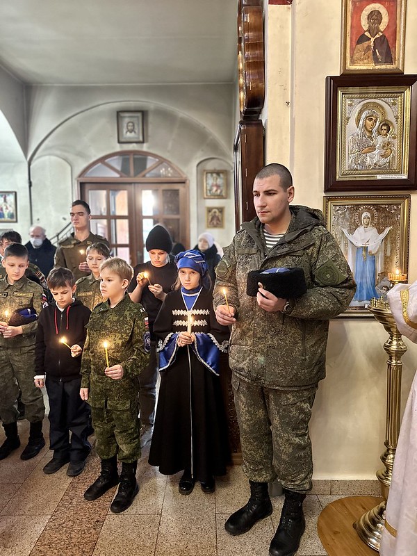 За богослужением молились руководитель и воспитанники Архиерейского казачьего конвоя.