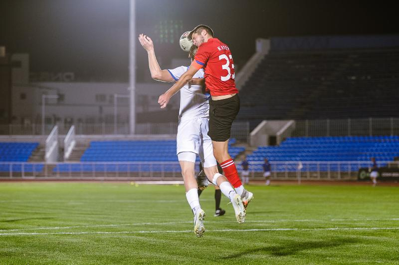 Преимущество гостей на протяжении всей встречи не вызывало сомнений. Они сразу же приступили к осаде чужих владений, и уже на десятой минуте счет открыл Сергей Кочканян. Еще до перерыва Руслан Суанов удвоил преимущество визитеров, забив свой седьмой гол в соревнованиях. Лучший бомбардир приезжей дружины отличился с 11- метровой отметки, разведя мяч и вратаря Никиту Дробышевского по разным углам.