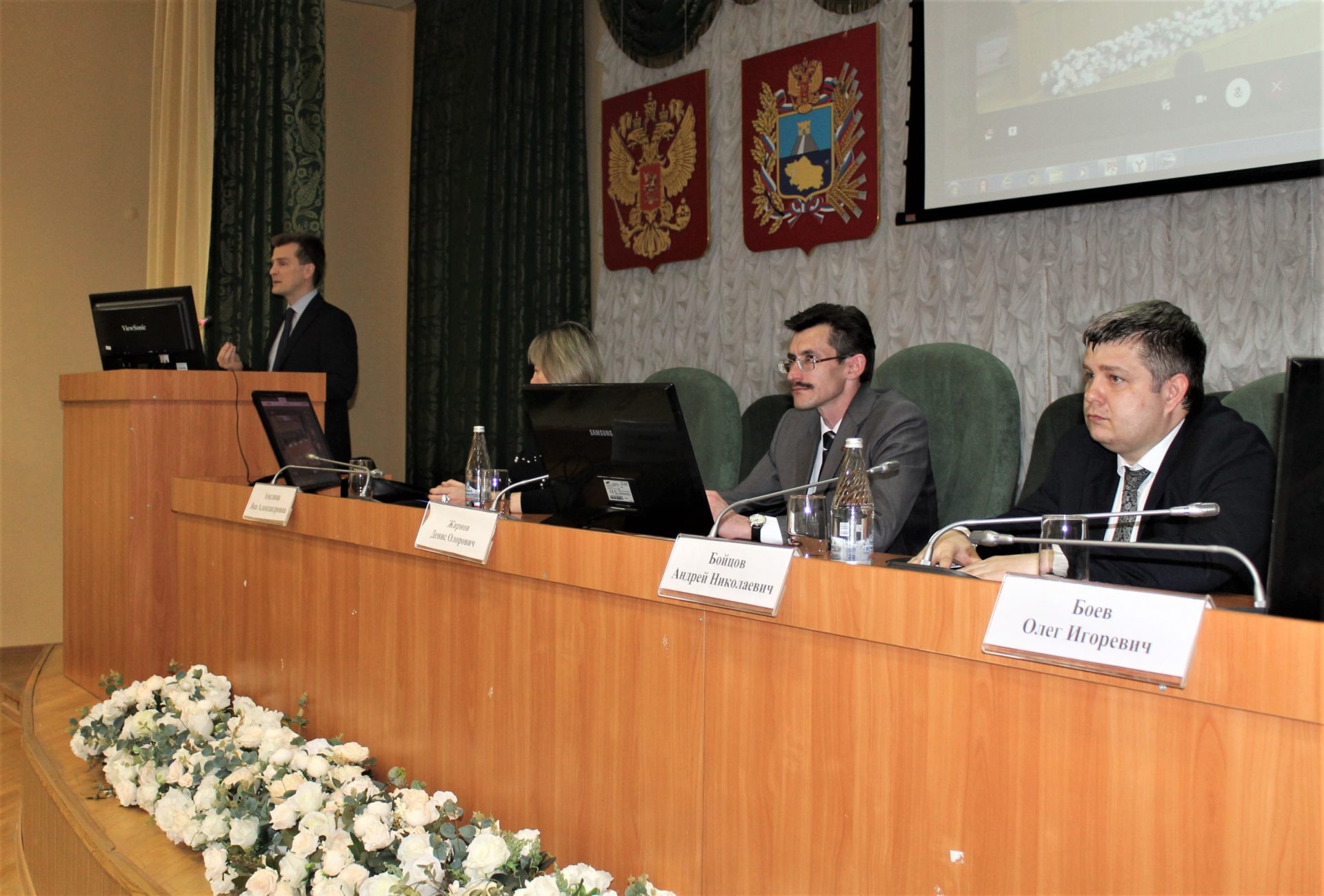 Слева направо: заместитель министра образования Денис Жирнов, политолог Яна Амелина, руководитель аппарата антитеррористической комиссии СК Андрей Бойцов, главный врач СККСПБ №1 Олег Боев