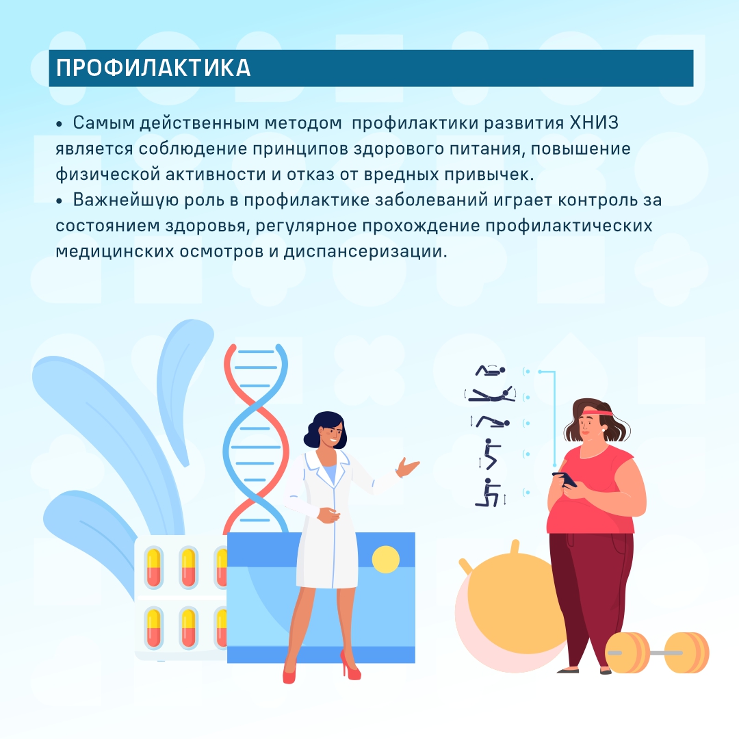 Очевидно, что самым действенным методом профилактики развития ХНИЗ является соблюдение принципов здорового питания, повышение физической активности и отказ от вредных привычек.