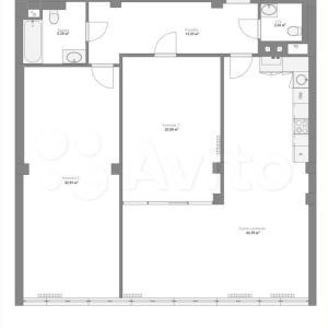 - Площадь кухни: 44 м²