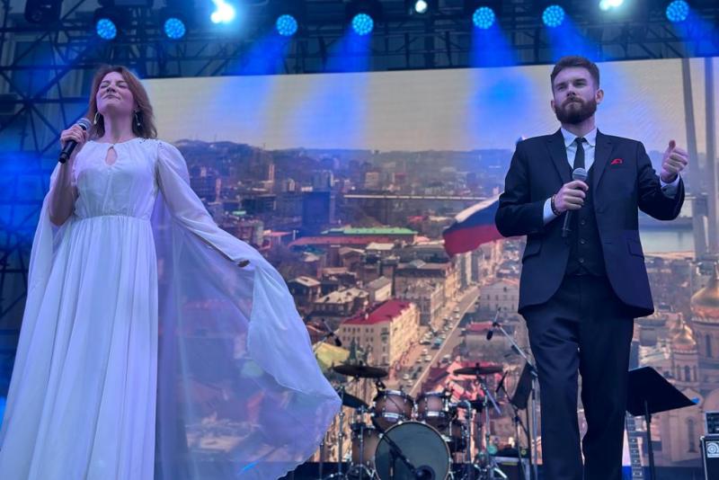 На главной площади города выступили победители и призеры фестивалей патриотической песни «Россия» и «Солдатский конверт».