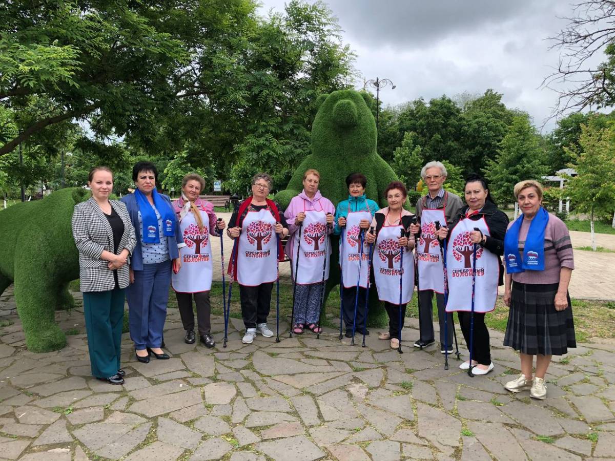 «Серебряные волонтёры» Красногвардейского комплексного центра социального обслуживания населения совместного с партийным активом «Единой России» прошли скандинавским шагом по Центральному парку села, а также провели зарядку на свежем воздухе на площади Районного Дворца культуры Красногвардейского.