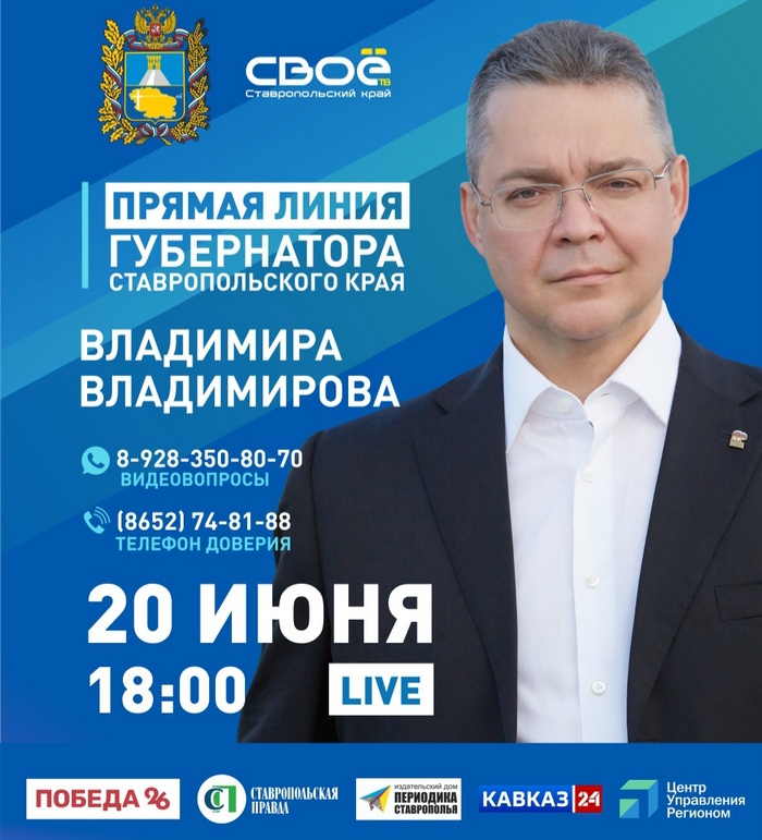 20 июня состоится Прямая линия Губернатора Ставропольского края Владимира Владимировича Владимирова