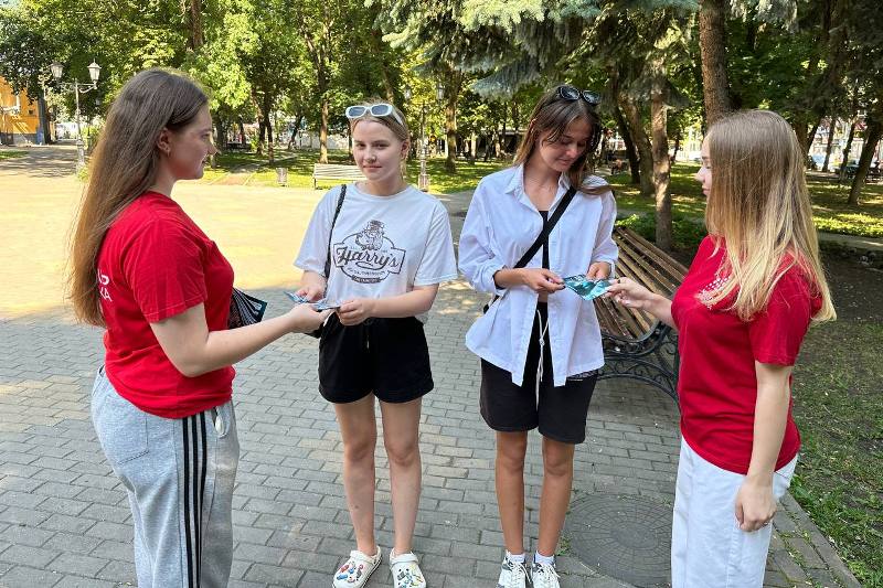 В одном из скверов курорта тем, кто передвигается на велосипедах и электросамокатах, напомнили о правилах безопасности и вручили информационные памятки и светоотражающие браслеты.