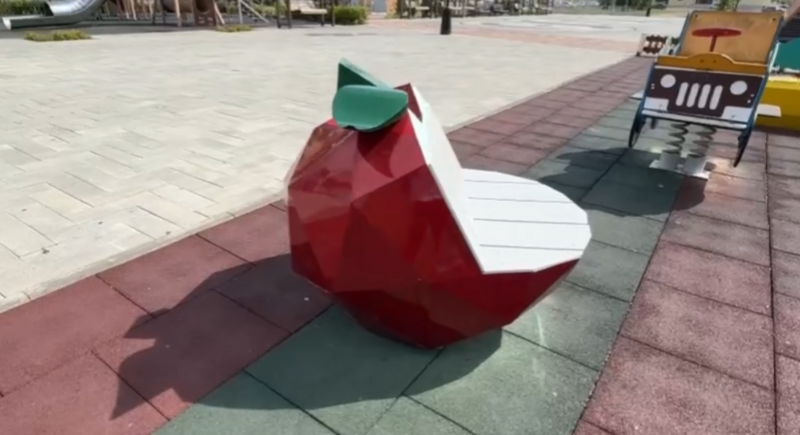 На детскую площадку третьей очереди бульвара Мира вернулись любимые арт-объекты юных горожан – яблоко и бегемот.