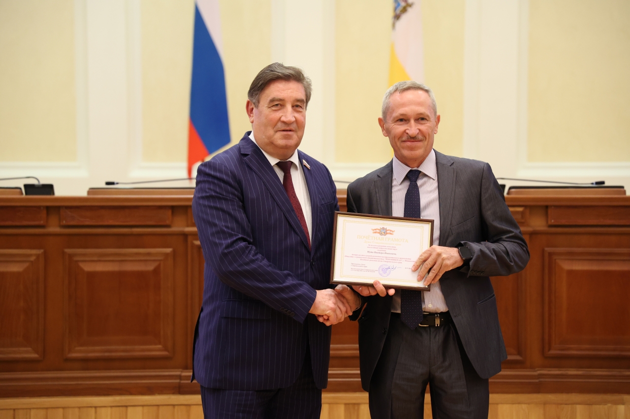 От имени председателя Думы Николая Великданя первый вице-спикер вручил Почетные грамоты краевого парламента лучшим представителям отраслевых предприятий.