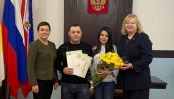 Начальник отдела ЗАГС по городу Пятигорску Елена Бухарова , поздравив новоиспеченных родителей, вручила первые документы дочерей и поздравления Губернатора Ставропольского края Владимира Владимирова «Письмо в будущее».