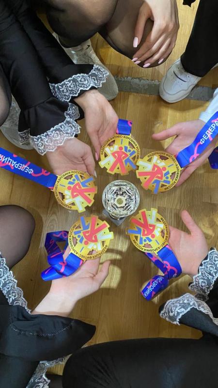 А в дисциплине «аэробика, 5 человек, 14-16 лет» чемпионом стала команда « РИТМ » ( Валерия Кийкова, Маргарита Кривоногова, София Чахирова, Александра Чахирова, Валерия Шинкарева ).