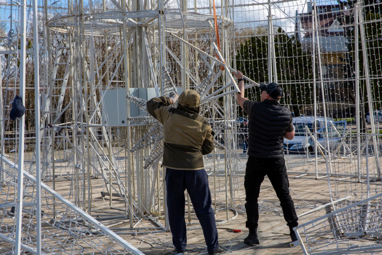 Специалисты уже проводят расконсервацию городских фонтанов. С некоторых из них сначала сняли специальные защитные каркасы. Затем демонтировали подсветку и гирлянды, которые зимой заменяли водные каскады на иллюминацию.