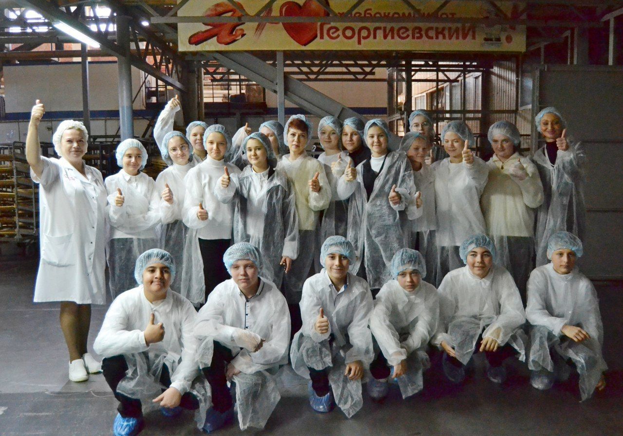 Следующим пунктом посещения ребят стал Георгиевский хлебокомбинат. Школьники не только узнали историю предприятия, но и смогли своими глазами увидеть, как производят булочки, пряники, сушки и круассаны.