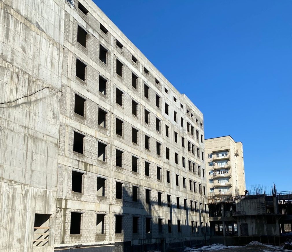 «Работы ведутся на четырёх блоках здания, также началось устройство колонн и стен надземного перехода, который будет соединять новый корпус с действующим диспансером», — отметил Валерий Савченко.