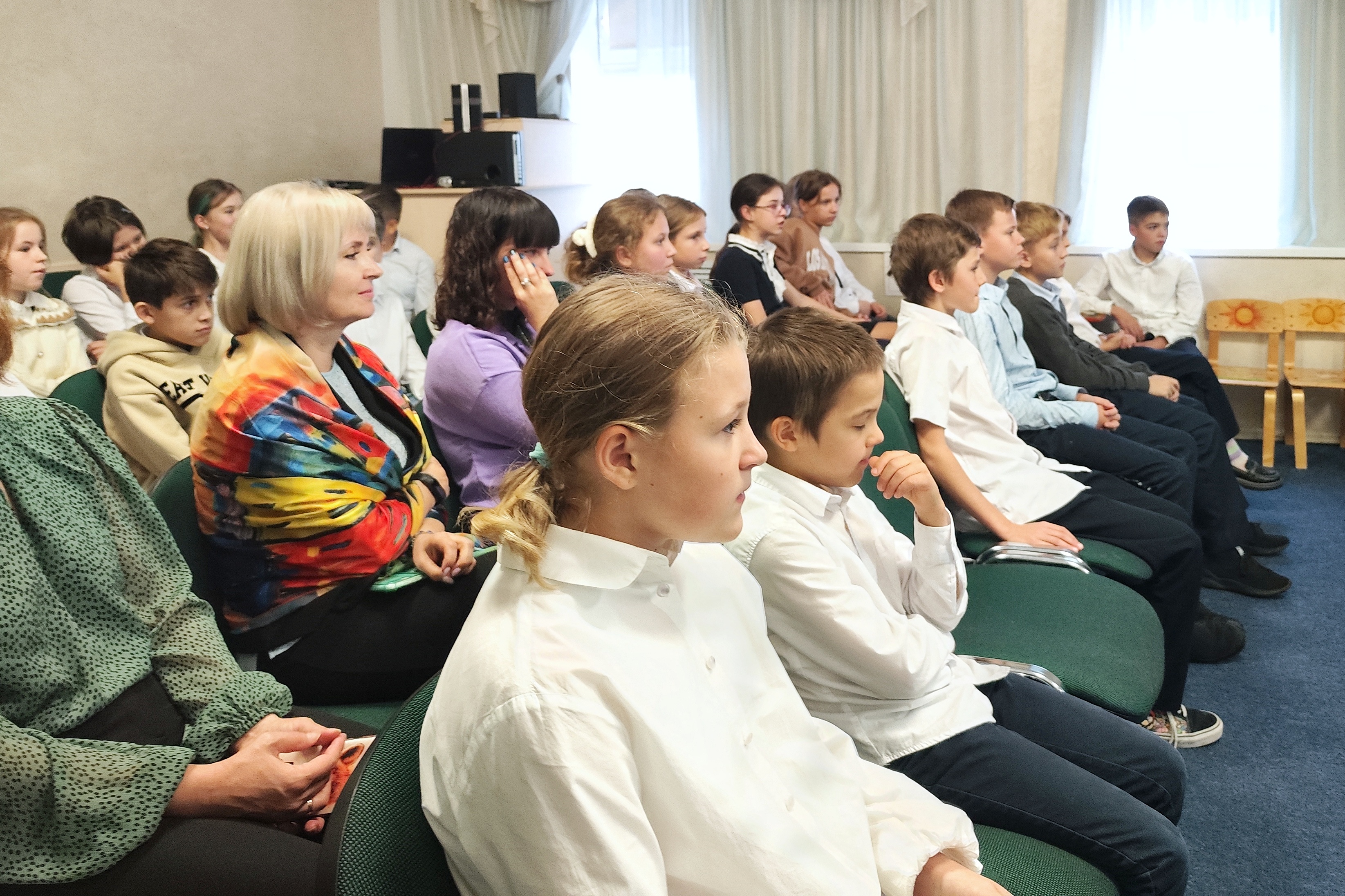 Для учащихся гимназии специалисты Управления Роспотребнадзора Юлия Пчелинцева и Ирина Сигай провели увлекательную лекцию о выборе продуктов здорового питания. Самые активные пятиклассники поучаствовали в интерактиве – они определяли, какое количество питательных веществ в каких пропорциях должно попадать в их собственные тарелки. После лекции и игры гимназисты буквально засыпали специалистов Управления дополнительными вопросами – детей интересовало буквально всё: стоит ли есть сладости, на которых «ничего не написано по-русски», какой сахар можно считать полезным и полезнее ли сахарозаменитель, есть ли вред от мёда и нужна ли организму йодированная соль, правда ли пальмовое масло вредное, и множество других.